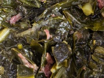 Savory pot of slow cooked Greens, garlic, onion.