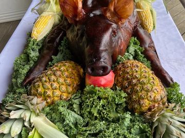 Slow smoked on-site offering a great Pig Roast atmosphere for your special event.